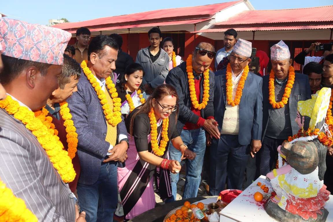 Program to inaugurate a new building with new management and unveil a statue of Saraswati